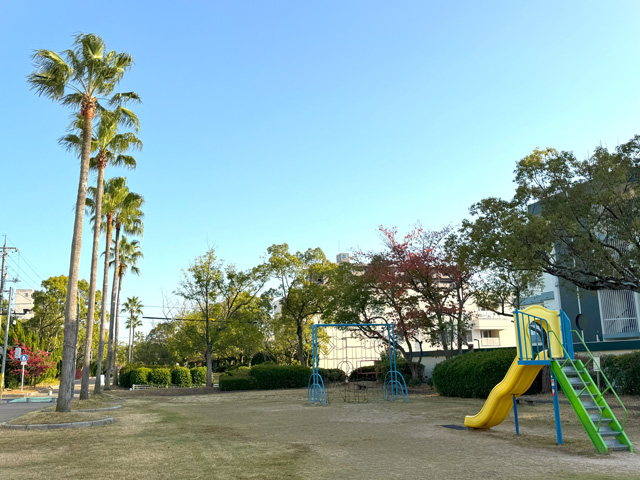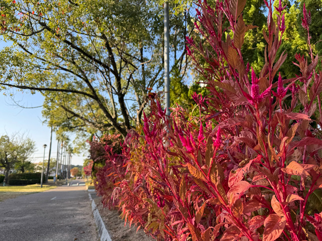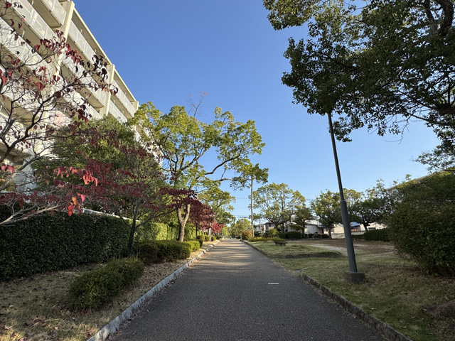 周南緑道緑地(グリーンベルト)は、災害時の避難路としての活用や、都市生活の快適性を図ることを目的とした、植栽帯と歩行者路を主体とする緑地で、重要な地域資源として整備されています。住宅街と遊歩道が並び、散歩コースとしても人気があります。 12月頃には、周陽市民センター近くにイルミネーションが施され、見る人を楽しませています。